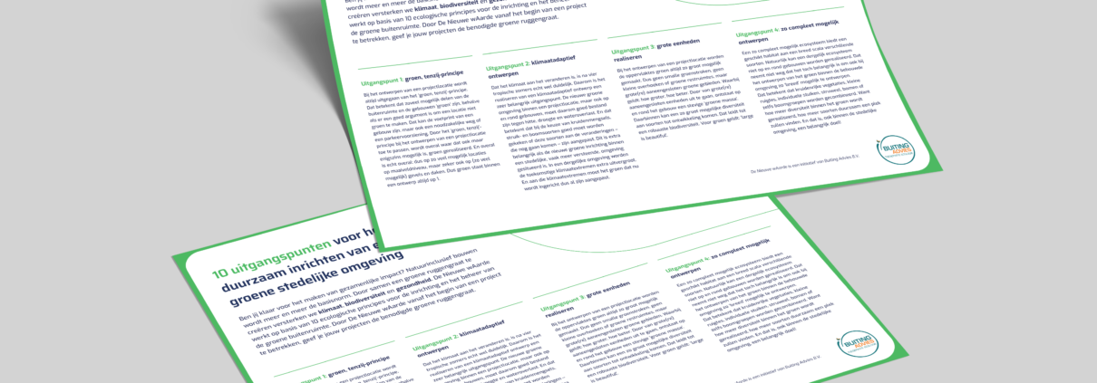 In de pdf lees je meer over deze uitgangspunten en hoe zij bijdragen aan een duurzame groene stedelijke omgeving. Download de pdf hier.